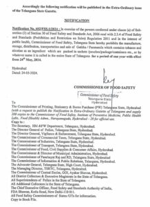“ਤੇਲੰਗਾਨਾ ਰਾਜ ਇਸ ਦੁਆਰਾ ਗੁਟਖਾ/ਪਾਨ ਮਸਾਲਾ ਦੇ ਨਿਰਮਾਣ, ਸਟੋਰੇਜ, ਵੰਡ, ਆਵਾਜਾਈ ਅਤੇ ਵਿਕਰੀ ‘ਤੇ ਪਾਬੰਦੀ ਲਗਾਉਂਦਾ ਹੈ ਜਿਸ ਵਿੱਚ ਤੰਬਾਕੂ ਅਤੇ ਨਿਕੋਟੀਨ ਇੱਕ ਸਾਮੱਗਰੀ ਦੇ ਤੌਰ ‘ਤੇ ਹੁੰਦਾ ਹੈ ਜੋ ਕਿ ਪਾਚਿਆਂ / ਪਾਊਚਾਂ / ਪੈਕੇਜ / ਕੰਟੇਨਰਾਂ ਆਦਿ ਵਿੱਚ ਪੈਕ ਕੀਤੇ ਜਾਂਦੇ ਹਨ, ਜਾਂ ਇਸ ਨੂੰ ਕਿਸੇ ਵੀ ਨਾਮ ਨਾਲ ਬੁਲਾਇਆ ਜਾਂਦਾ ਹੈ। 24 ਮਈ, 2024 ਤੋਂ ਇੱਕ ਸਾਲ ਦੀ ਮਿਆਦ ਲਈ ਪੂਰੇ ਤੇਲੰਗਾਨਾ ਰਾਜ, ”ਆਰਡਰ ਵਿੱਚ ਲਿਖਿਆ ਗਿਆ ਹੈ।