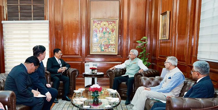 ਵਿਦੇਸ਼ ਮੰਤਰੀ ਐੱਸ ਜੈਸ਼ੰਕਰ ਨੇ ਅੱਜ ਆਪਣੇ ਮਿਆਂਮਾਰ ਦੇ ਹਮਰੁਤਬਾ ਯੂ ਥਾਨ ਸ਼ਵੇ ਨਾਲ ਮੁਲਾਕਾਤ ਦੌਰਾਨ ਗੁਆਂਢੀ ਮੁਲਕ ’ਚ ਹਿੰਸਾ ਤੇ ਅਸਥਿਰਤਾ ਦਾ ਅਸਰ ਭਾਰਤੀ ਸਰਹੱਦ ’ਤੇ ਪੈਣ ਦੇ ਸਬੰਧ ਵਿੱਚ ਭਾਰਤ ਦੀ ਚਿੰਤਾ ਸਾਂਝੀ ਕੀਤੀ ਅਤੇ ਮਯਾਵਾੜੀ ਸ਼ਹਿਰ ’ਚ ਫਸੇ ਭਾਰਤੀਆਂ ਜਲਦੀ ਤੋਂ ਜਲਦੀ ਵਾਪਸੀ ਵਿੱਚ ਸਹਿਯੋਗ ਦੀ ਮੰਗ ਕੀਤੀ।ਜੈਸ਼ੰਕਰ ਨੇ ਥਾਨ ਸ਼ਵੇ ਨਾਲ ਨਵੀਂ ਦਿੱਲੀ ’ਚ ਮੁਲਾਕਾਤ ਕੀਤੀ ਜੋ ਆਪਣੀ ਇੱਕ ਯਾਤਰਾ ਦੌਰਾਨ ਇੱਥੇ ਰੁਕੇ ਸਨ। ਉਹ ਮਿਆਂਮਾਰ ਦੇ ਉਪ ਪ੍ਰਧਾਨ ਮੰਤਰੀ ਵੀ ਹਨ। ਮੁਲਾਕਾਤ ਤੋਂ ਬਾਅਦ ਸੋਸ਼ਲ ਮੀਡੀਆ ਮੰਚ ‘ਐਕਸ’ ’ਤੇ ਜਾਰੀ ਪੋਸਟ ਵਿੱਚ ਵਿਦੇਸ਼ ਮੰਤਰੀ ਨੇ ਕਿਹਾ ਕਿ ਉਨ੍ਹਾਂ ਮਿਆਂਮਾਰ ’ਚ ਭਾਰਤ ਦੇ ਚੱਲ ਰਹੇ ਪ੍ਰਾਜੈਕਟਾਂ ਦੀ ‘ਭਰੋਸੇਯੋਗ ਸੁਰੱਖਿਆ’ ਲਈ ਜ਼ੋਰ ਦਿੱਤਾ ਅਤੇ ਗੁਆਂਢੀ ਮੁਲਕ ਨੂੰ ਜਲਦੀ ਤੋਂ ਜਲਦੀ ਜਮਹੂਰੀ ਰਾਹ ’ਤੇ ਪਰਤ ਆਉਣ ਦੀ ਅਪੀਲ ਕੀਤੀ। ਜੈਸ਼ੰਕਰ ਨੇ ਗੁਆਂਢੀ ਮੁਲਕ ’ਚ ਜਾਰੀ ਹਿੰਸਾ ਤੇ ਅਸਥਿਰਤਾ ਦਾ ਭਾਰਤ-ਮਿਆਂਮਾਰ ਸਰਹੱਦ ’ਤੇ ਵਿਸ਼ੇਸ਼ ਤੌਰ ’ਤੇ ਪੈ ਰਹੇ ਅਸਰ ਦੀ ਵੀ ਗੱਲ ਕੀਤੀ।
