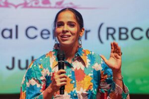 ਬੈਡਮਿੰਟਨ ਖਿਡਾਰਨ ਵਜੋਂ ਵੀ ਸਾਇਨਾ ਨੇ ਕਾਫ਼ੀ ਪ੍ਰਭਾਵਿਤ ਕੀਤਾ ਹੈ, ਜਿਸ ਵਿੱਚ ਉਹ ਦੁਨੀਆ ’ਚ ਸਿਖਰਲਾ ਦਰਜਾ ਹਾਸਲ ਕਰਨ ਵਾਲੀ ਪਹਿਲੀ ਭਾਰਤੀ ਸ਼ਟਲਰ ਬਣੀ ਅਤੇ ਉਹ ਓਲੰਪਿਕ ਤਗ਼ਮਾ ਜਿੱਤਣ ਵਾਲੀ ਦੇਸ਼ ਦੀ ਪਹਿਲੀ ਮਹਿਲਾ ਅਥਲੀਟ ਵੀ ਬਣੀ। ਰਾਸ਼ਟਰਪਤੀ ਭਵਨ ਵਿੱਚ ‘ਹਰ ਸਟੋਰੀ, ਮਾਈ ਸਟੋਰੀ’ ਗੱਲਬਾਤ ਦੌਰਾਨ ਸਾਇਨਾ ਨੇ ਕਿਹਾ, ‘‘ਕਦੇ-ਕਦੇ ਮੈਨੂੰ ਲੱਗਦਾ ਹੈ ਕਿ ਜੇ ਮੇਰੇ ਮਾਪਿਆਂ ਨੇ ਮੈਨੂੰ ਟੈਨਿਸ ਖੇਡਣ ਲਾਇਆ ਹੁੰਦਾ ਤਾਂ ਚੰਗਾ ਹੁੰਦਾ। ਇਸ ਵਿੱਚ ਜ਼ਿਆਦਾ ਪੈਸਾ ਹੈ ਅਤੇ ਮੈਨੂੰ ਲੱਗਦਾ ਹੈ ਕਿ ਮੈਂ ਜ਼ਿਆਦਾਤਰ ਤਾਕਤਵਰ ਸੀ। ਮੈਂ ਟੈਨਿਸ ਵਿੱਚ ਬੈਡਮਿੰਟਨ ਤੋਂ ਬਿਹਤਰ ਕਰ ਸਕਦੀ ਸੀ।’’ ਸਾਇਨਾ ਨੇ ਕਈਆਂ ਨੂੰ ਬੈਡਮਿੰਟਨ ਵਿੱਚ ਆਉਣ ਲਈ ਪ੍ਰੇਰਿਤ ਕੀਤਾ ਹੈ ਪਰ ਜਦੋਂ ਉਸ ਨੇ ਅੱਠ ਸਾਲ ਦੀ ਉਮਰ ਵਿੱਚ ਖੇਡਣਾ ਸ਼ੁਰੂ ਕੀਤਾ ਸੀ ਤਾਂ ਉਸ ਲਈ ਕੋਈ ਆਦਰਸ਼ ਨਹੀਂ ਸੀ। ਸਾਇਨਾ ਨੇ ਕਿਹਾ, ‘‘ਜਦੋਂ ਮੈਂ ਸ਼ੁਰੂਆਤ ਕੀਤੀ ਸੀ ਤਾਂ ਮੇਰੇ ਲਈ ਕੋਈ ਆਦਰਸ਼ ਨਹੀਂ ਸੀ। ਇਹ ਕਹਿਣ ਲਈ ਕੋਈ ਨਹੀਂ ਸੀ, ‘ਮੈਂ ਦੁਨੀਆ ਦੀ ਨੰਬਰ ਇੱਕ ਖਿਡਾਰੀ ਬਣਨਾ ਚਾਹੁੰਦੀ ਸੀ ਜਾਂ ਓਲੰਪਿਕ ਤਗ਼ਮਾ ਜੇਤੂ ਬਣਨਾ ਚਾਹੁੰਦੀ ਸੀ।’ ਮੇਰੇ ਤੋਂ ਪਹਿਲਾਂ ਮੈਂ ਕਿਸੇ ਨੂੰ ਬੈਡਮਿੰਟਨ ਵਿੱਚ ਅਜਿਹਾ ਕਰਦਿਆਂ ਨਹੀਂ ਦੇਖਿਆ ਸੀ।’’ ਲੰਡਨ ਓਲੰਪਿਕ ਦੇ ਕਾਂਸੇ ਦੇ ਤਗ਼ਮੇ ਤੋਂ ਇਲਾਵਾ ਸਾਇਨਾ ਨੇ ਵਿਸ਼ਵ ਚੈਂਪੀਅਨਸ਼ਿਪ ਵਿੱਚ ਕਾਂਸੇ ਅਤੇ ਚਾਂਦੀ ਦੇ ਤਗ਼ਮੇ ਜਿੱਤੇ ਅਤੇ ਰਾਸ਼ਟਰਮੰਡਲ ਖੇਡਾਂ ਵਿੱਚ ਵੀ ਕਈ ਸੋਨ ਤਗ਼ਮੇ ਜਿੱਤੇ।ਉਸ ਨੇ ਕਿਹਾ, ‘‘ਮੈਂ ਹਮੇਸ਼ਾ ਬੱਚਿਆਂ ਨੂੰ ਖੇਡਾਂ ’ਤੇ ਧਿਆਨ ਲਗਾਉਣ ਲਈ ਕਹਿੰਦੀ ਹਾਂ। ਚੀਨ 60-70 ਤਗ਼ਮੇ ਜਿੱਤਦਾ ਹੈ ਅਤੇ ਸਾਨੂੰ ਸਿਰਫ਼ ਤਿੰਨ-ਚਾਰ ਤਗ਼ਮੇ ਮਿਲਦੇ ਹਨ। ਇੰਨੇ ਸਾਰੇ ਡਾਕਟਰ ਅਤੇ ਇੰਜਨੀਅਰ ਹੁੰਦੇ ਹਨ ਅਤੇ ਉਨ੍ਹਾਂ ਦੇ ਨਾਮ ਅਖ਼ਬਾਰਾਂ ਵਿੱਚ ਨਹੀਂ ਆਉਂਦੇ।’’ ਸਾਇਨਾ ਨੇ ਕਿਹਾ, ‘‘ਮੈਂ ਖਾਸ ਕਰਕੇ ਲੜਕੀਆਂ ਨੂੰ ਅੱਗੇ ਆਉਣ ਲਈ ਕਹਾਂਗੀ ਕਿ ਉਹ ਫਿੱਟ ਹੋਣਾ ਸ਼ੁਰੂ ਕਰਨ ਤੇ ਖੇਡਾਂ ਵਿੱਚ ਆਉਣ।’’
