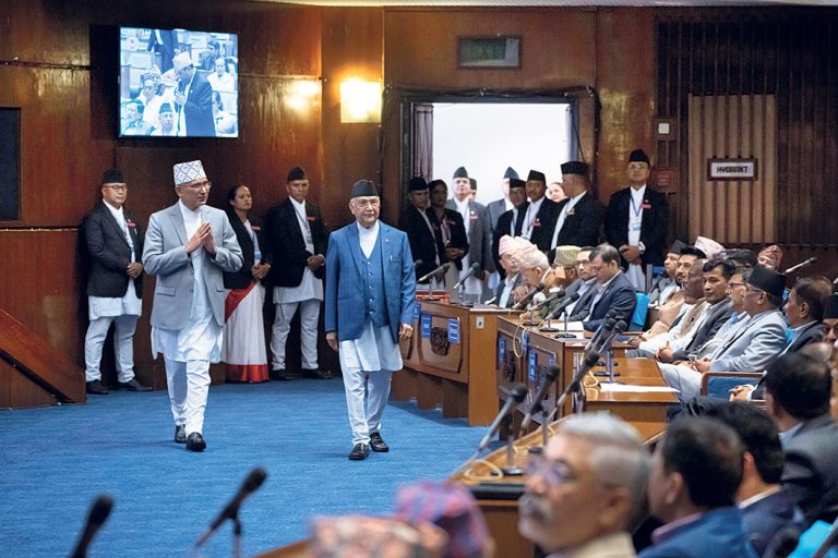 ਸਪੀਕਰ ਦੇਵ ਰਾਜ ਘਿਮੀਰੇ ਨੇ ਵੋਟਾਂ ਦੀ ਗਿਣਤੀ ਤੋਂ ਬਾਅਦ ਓਲੀ ਨੂੰ ਭਰੋਸੇ ਦਾ ਵੋਟ ਮਿਲਣ ਬਾਰੇ ਜਾਣਕਾਰੀ ਸਾਂਝੀ ਕੀਤੀ। ਇਸ ਤੋਂ ਪਹਿਲਾਂ ਸੰਸਦ ਦੀ ਸਵੇਰੇ ਸ਼ੁਰੂ ਹੋਈ ਮੀਟਿੰਗ ਵਿਚ ਪ੍ਰਧਾਨ ਮੰਤਰੀ ਓਲੀ ਨੇ ਸਦਨ ਤੋਂ ਭਰੋਸੇ ਦਾ ਵੋਟ ਮੰਗਣ ਲਈ ਮਤਾ ਪੇਸ਼ ਕੀਤਾ। ਸਪੀਕਰ ਘਿਮੀਰੇ ਨੇ ਸਦਨ ਦੇ ਮੈਂਬਰਾਂ ਅਤੇ ਸੱਤਾਧਾਰੀ ਅਤੇ ਵਿਰੋਧੀ ਪਾਰਟੀਆਂ ਦੇ ਨੁਮਾਇੰਦਿਆਂ ਨੂੰ ਪ੍ਰਸਤਾਵ ’ਤੇ ਚਰਚਾ ਕਰਨ ਲਈ ਦੋ ਘੰਟੇ ਦਾ ਸਮਾਂ ਦਿੱਤਾ। ਇਸ ਤੋਂ ਬਾਅਦ ਪ੍ਰਧਾਨ ਮੰਤਰੀ ਨੂੰ ਸਦਨ ਦੇ ਮੈਂਬਰਾਂ ਵੱਲੋਂ ਉਠਾਏ ਗਏ ਮੁੱਦਿਆਂ ਦਾ ਜਵਾਬ ਦੇਣ ਲਈ ਸਮਾਂ ਦਿੱਤਾ ਗਿਆ। ਸਦਨ ਦੇ ਮੈਂਬਰਾਂ ਵੱਲੋਂ ਉਠਾਏ ਗਏ ਮੁੱਦਿਆਂ ਦੇ ਜਵਾਬ ਵਿੱਚ ਓਲੀ ਨੇ ਕਿਹਾ, ‘ਮੈਂ ਭ੍ਰਿਸ਼ਟਾਚਾਰ ਵਿੱਚ ਸ਼ਾਮਲ ਨਹੀਂ ਸੀ ਅਤੇ ਨਾ ਹੀ ਹੋਵਾਂਗਾ, ਜੇ ਕੋਈ ਭ੍ਰਿਸ਼ਟਾਚਾਰ ਕਰਦਾ ਹੈ ਤਾਂ ਉਸ ਖ਼ਿਲਾਫ਼ ਸਖਤ ਕਾਰਵਾਈ ਕੀਤੀ ਜਾਵੇਗੀ।’ ਉਨ੍ਹਾਂ ਕਿਹਾ ਕਿ ਦੋ ਵੱਡੀਆਂ ਪਾਰਟੀਆਂ ਨੇਪਾਲੀ ਕਾਂਗਰਸ ਅਤੇ ਸੀਪੀਐਨ-ਯੂਐਮਐਲ ਸਿਆਸੀ ਸਥਿਰਤਾ ਬਣਾਈ ਰੱਖਣ, ਭ੍ਰਿਸ਼ਟਾਚਾਰ ਨੂੰ ਰੋਕਣ ਅਤੇ ਚੰਗਾ ਸ਼ਾਸਨ ਦੇਣ ਲਈ ਵਚਨਬੱਧ ਹਨ। ਓਲੀ ਨੇ ਜ਼ੋਰ ਦੇ ਕੇ ਕਿਹਾ ਕਿ ਇਹ ਗੱਠਜੋੜ ਸਰਕਾਰ ਸਥਿਰਤਾ, ਵਿਕਾਸ ਅਤੇ ਚੰਗੇ ਸ਼ਾਸਨ ਲਈ ਭਰੋਸੇਯੋਗ ਈਕੋ-ਸਿਸਟਮ ਬਣਾਏਗੀ।