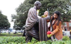 ਆਕਲੈਂਡ (ਐੱਨ ਜੈੱਡ ਤਸਵੀਰ) ਜਿਵੇਂ-ਜਿਵੇਂ ਨਿਊਜ਼ੀਲੈਂਡ ਦੀ ਭਾਰਤੀ ਆਬਾਦੀ ਵਧਦੀ ਜਾ ਰਹੀ ਹੈ, ਦੇਸ਼ ਭਰ ਵਿੱਚ ਭਾਈਚਾਰੇ ਲਈ ਪੂਜਨੀਕ ਸ਼ਖਸੀਅਤਾਂ ਦਾ ਸਨਮਾਨ ਕਰਨ ਵਾਲੀਆਂ ਮੂਰਤੀਆਂ ਦੀ ਗਿਣਤੀ ਵੱਧ ਰਹੀ ਹੈ। ਇਨ੍ਹਾਂ ਮੂਰਤੀਆਂ ਵਿਚੋਂ ਸਭ ਤੋਂ ਪ੍ਰਮੁੱਖ ਭਾਰਤੀ ਸੁਤੰਤਰਤਾ ਦੇ ਪ੍ਰਤੀਕ ਮਹਾਤਮਾ ਗਾਂਧੀ ਦੀ ਕਾਂਸੀ ਦੀ ਮੂਰਤੀ ਹੈ ਜੋ ਵੈਲਿੰਗਟਨ ਰੇਲਵੇ ਸਟੇਸ਼ਨ ਦੇ ਸਾਹਮਣੇ ਖੜ੍ਹੀ ਹੈ। ਭਾਰਤੀ ਵਿਸ਼ਵ ਵਿਆਪੀ ਤੌਰ ‘ਤੇ “ਰਾਸ਼ਟਰ ਪਿਤਾ” ਵਜੋਂ ਸਤਿਕਾਰਦੇ ਹਨ, ਉਸਦਾ ਜਨਮ 2 ਅਕਤੂਬਰ 1869 ਨੂੰ ਗੁਜਰਾਤ ਰਾਜ ਦੇ ਪੋਰਬੰਦਰ ਵਿੱਚ ਹੋਇਆ ਸੀ। ਇਸ ਸਾਲ ਮਹਾਤਮਾ ਗਾਂਧੀ ਦੀ 155ਵੀਂ ਜਯੰਤੀ ਹੈ ਅਤੇ ਹਰ ਸਾਲ ਦੀ ਤਰ੍ਹਾਂ ਵੈਲਿੰਗਟਨ ‘ਚ ਭਾਰਤੀ ਹਾਈ ਕਮਿਸ਼ਨ ਨੇ ਮਿਸ਼ਨ ਮੁਖੀ ਨੀਤਾ ਭੂਸ਼ਣ ਵੱਲੋਂ ਮੂਰਤੀ ‘ਤੇ ਫੁੱਲ ਭੇਟ ਕਰਕੇ ਇਸ ਮੌਕੇ ਨੂੰ ਯਾਦ ਕੀਤਾ। ਇਹ ਮੂਰਤੀ 2007 ਵਿੱਚ ਭਾਰਤੀ ਲੋਕਾਂ ਦੀ ਤਰਫੋਂ ਇੰਡੀਅਨ ਕੌਂਸਲ ਫਾਰ ਕਲਚਰਲ ਰਿਲੇਸ਼ਨਜ਼ ਦੁਆਰਾ ਸ਼ਹਿਰ ਨੂੰ ਤੋਹਫ਼ੇ ਵਜੋਂ ਦਿੱਤੀ ਗਈ ਸੀ। ਮੰਨਿਆ ਜਾਂਦਾ ਹੈ ਕਿ ਇਹ ਨਿਊਜ਼ੀਲੈਂਡ ਵਿੱਚ ਬਣਾਇਆ ਗਿਆ ਪਹਿਲਾ ਗਾਂਧੀ ਸੰਵਿਧਾਨ ਹੈ। ਪ੍ਰਸਿੱਧ ਭਾਰਤੀ ਮੂਰਤੀਕਾਰ ਗੌਤਮ ਪਾਲ ਦੁਆਰਾ ਬਣਾਈ ਗਈ, ਮੂਰਤੀ ਦਾ ਉਦਘਾਟਨ 2 ਅਕਤੂਬਰ 2007 ਨੂੰ ਰੇਲਵੇ ਸਟੇਸ਼ਨ ਦੇ ਸਾਹਮਣੇ ਕੀਤਾ ਗਿਆ ਸੀ। ਇਸ ਮੂਰਤੀ ਬਾਰੇ ਕਿਹਾ ਜਾਂਦਾ ਹੈ ਕਿ ਨਿਊਜੀਲੈਂਡ ਵਿੱਚ ਲੱਗਣ ਵਾਲੀ ਇਹ ਗਾਂਧੀ ਜੀ ਪਹਿਲੀ ਮੂਰਤੀ ਹੈ। 2007 ਦੇ ਉਦਘਾਟਨ ਵਿੱਚ ਗਵਰਨਰ ਜਨਰਲ ਆਨੰਦ ਸੱਤਿਆਨੰਦ, ਵੈਲਿੰਗਟਨ ਦੇ ਮੇਅਰ ਕੈਰੀ ਪ੍ਰੇਂਡਰਗਾਸਟ ਅਤੇ ਭਾਰਤੀ ਹਾਈ ਕਮਿਸ਼ਨਰ ਕੇਪੀ ਅਰਨੈਸਟ ਨੇ ਹਿੱਸਾ ਲਿਆ ਸੀ। ਸੱਤਿਆਨੰਦ ਨੇ ਇਸ ਮੂਰਤੀ ਦੇ ਤੋਹਫ਼ੇ ਨੂੰ ਭਾਰਤ ਅਤੇ ਨਿਊਜ਼ੀਲੈਂਡ ਵਿਚਾਲੇ ਸਥਾਈ ਦੋਸਤੀ ਦਾ ਪ੍ਰਤੀਕ ਦੱਸਿਆ ਸੀ। ਅਰਨੈਸਟ ਨੇ ਇਸ ਮੂਰਤੀ ਨੂੰ ਨਿਊਜ਼ੀਲੈਂਡ ਦੇ ਲੋਕਾਂ ਦੀ ਵਚਨਬੱਧਤਾ ਦੀ ਸਵੀਕਾਰਤਾ ਦੱਸਿਆ ਜਿਸ ਨੇ ਵਿਸ਼ਵ ਨੂੰ ਸਹਿਣਸ਼ੀਲ, ਖੁੱਲ੍ਹੇ ਅਤੇ ਸਮਾਵੇਸ਼ੀ ਸਮਾਜ ਦੀ ਮਿਸਾਲ ਕਾਇਮ ਕੀਤੀ। ਪ੍ਰੇਂਡਰਗਾਸਟ ਨੇ ਕਿਹਾ ਕਿ ਮੂਰਤੀ ਦੋਵਾਂ ਦੇਸ਼ਾਂ ਵਿਚਾਲੇ ਦੋਸਤੀ ਅਤੇ ਇਕਜੁੱਟਤਾ ਦਾ ਪ੍ਰਤੀਕ ਹੈ। ਪ੍ਰੇਂਡਰਗਾਸਟ ਨੇ ਕਿਹਾ ਕਿ ਇਸ ਜਗ੍ਹਾ ਦੀ ਚੋਣ ਇਸ ਲਈ ਕੀਤੀ ਗਈ ਕਿਉਂਕਿ ਗਾਂਧੀ ਉਨ੍ਹਾਂ ਲੋਕਾਂ ਦੇ ਵਿਅਕਤੀ ਸਨ ਜੋ ਰੇਲ ਗੱਡੀਆਂ ਅਤੇ ਹੋਰ ਜਨਤਕ ਆਵਾਜਾਈ ਦੀ ਵਰਤੋਂ ਕਰਨਾ ਪਸੰਦ ਕਰਦੇ ਸਨ।