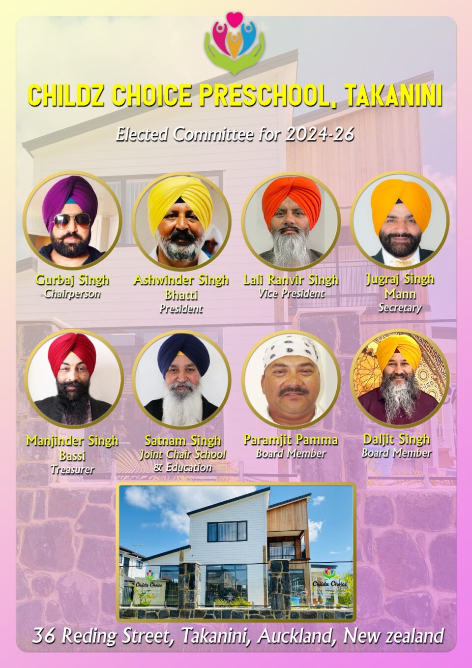 ਕਰਤਾਰ ਸਿੰਘ ਪਿਛਲੇ 25 ਸਾਲ ਤੋ ਸੰਸਥਾ ਦੇ ਮੈਬਰ ਹਨ ਅਤੇ ਧਾਰਮਿਕ ਸ਼ਖ਼ਸੀਅਤ ਹਨ।ਅਗਲੇ ਦੋ ਸਾਲ ਲਈ ਕਰਤਾਰ ਸਿੰਘ ਪ੍ਰਧਾਨ ਹੋਣਗੇ।ਇਸੇ ਤਰਾਂ ਲਾਲੀ ਰਣਵੀਰ ਸਿੰਘ ਨੂੰ ਸਕੱਤਰ ਜਨਰਲ ਨਿਯੁਕਤ ਚੁਣਿਆ ਗਿਆ ।ਸਿੱਖ ਹੈਰੀਟੇਜ ਸਕੂਲ ਬੋਰਡ ਦਾ ਪ੍ਰਧਾਨ ਬੀਬੀ ਮਨਦੀਪ ਕੌਰ ਮਿਨਹਾਸ ਨੂੰ ਚੁਣਿਆ ਗਿਆ ਹੈ । ਜਿਕਰਯੋਗ ਹੈ ਕਿ ਇਸ ਸਕੂਲ ਵਿੱਚ 900 ਬੱਚੇ ਪੜਦੇ ਹਨ ਅਤੇ ਬੀਬੀ ਮਨਦੀਪ ਕੌਰ ਬੈਕ ਆਫ ਨਿਊਜੀਲੈਡ ਵਿੱਚ ਕੰਮ ਕਰਦੇ ਹਨ ।ਬੀਬੀ ਕੁਲਜੀਤ ਕੌਰ ਚੇਅਰਪਰਸਨ ਨਿਯੁਕਤ ਕੀਤੇ ਗਏ ਹਨ