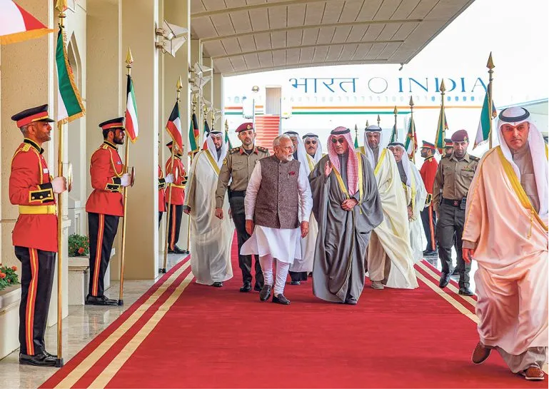 ਪ੍ਰਧਾਨ ਮੰਤਰੀ ਨਰਿੰਦਰ ਮੋਦੀ ਅੱਜ ਦੋ ਰੋਜ਼ਾ ਯਾਤਰਾ ’ਤੇ ਕੁਵੈਤ ਪੁੱਜੇ ਜਿੱਥੇ ਉਹ ਪਰਵਾਸੀ ਭਾਰਤੀ ਭਾਈਚਾਰੇ ਨੂੰ ਸੰਬੋਧਨ ਕਰ ਰਹੇ ਸਨ। ਉਹ ਵੱਖ ਵੱਖ ਖੇਤਰਾਂ ’ਚ ਭਾਰਤ-ਕੁਵੈਤ ਦੋਸਤੀ ਨੂੰ ਮਜ਼ਬੂਤ ਕਰਨ ਲਈ ਕੁਵੈਤੀ ਲੀਡਰਸ਼ਿਪ ਨਾਲ ਵਾਰਤਾ ਕਰਨਗੇ। ਉਨ੍ਹਾਂ ਇੱਥੇ ਭਾਰਤੀ ਵਰਕਰਾਂ ਨਾਲ ਵੀ ਮੁਲਾਕਾਤ ਕੀਤੀ। ਪਰਵਾਸੀ ਭਾਰਤੀ ਭਾਈਚਾਰੇ ਨੂੰ ਸੰਬੋਧਨ ਕਰਦਿਆਂ ਮੋਦੀ ਨੇ ਕਿਹਾ, ‘ਭਾਰਤ ਦੇ ਇੱਥੇ ਪਹੁੰਚਣ ’ਚ ਤੁਹਾਨੂੰ ਚਾਰ ਘੰਟੇ ਲਗਦੇ ਹਨ ਪਰ ਕਿਸੇ ਭਾਰਤੀ ਪ੍ਰਧਾਨ ਮੰਤਰੀ ਨੂੰ ਕੁਵੈਤ ਜਾਣ ’ਚ ਚਾਰ ਦਹਾਕੇ ਲੱਗ ਗਏ।’ ਉਨ੍ਹਾਂ ਕਿਹਾ, ‘ਤੁਸੀਂ ਸਾਰੇ ਭਾਰਤ ਦੇ ਵੱਖ ਵੱਖ ਹਿੱਸਿਆਂ ਤੋਂ ਇੱਕੇ ਆਏ ਹੋ ਪਰ ਤੁਹਾਨੂੰ ਸਾਰਿਆਂ ਨੂੰ ਦੇਖ ਕੇ ਲਗਦਾ ਹੈ ਕਿ ਜਿਵੇਂ ਇੱਥੇ ਇੱਕ ਮਿਨੀ ਹਿੰਦੁਸਤਾਨ ਇਕੱਠਾ ਹੋਇਆ ਹੋਵੇ।’ਮੋਦੀ ਕੁਵੈਤ ਦੇ ਅਮੀਰ ਸ਼ੇਖ ਮਿਸ਼ਅਲ ਅਲ-ਅਹਿਮਦ ਅਲ-ਜਬਰ ਅਲ-ਸਬਾ ਦੇ ਸੱਦੇ ’ਤੇ ਕੁਵੈਤ ਪੁੱਜੇ ਹਨ। 43 ਸਾਲ ਬਾਅਦ ਕਿਸੇ ਵੀ ਭਾਰਤੀ ਪ੍ਰਧਾਨ ਮੰਤਰੀ ਦੀ ਕੁਵੈਤ ਦੀ ਇਹ ਪਹਿਲੀ ਯਾਤਰਾ ਹੈ। ਕੁਵੈਤ ਦੇ ਪਹਿਲੇ ਉਪ ਪ੍ਰਧਾਨ ਮੰਤਰੀ ਸ਼ੇਖ ਫਹਾਦ ਯੂਸੁਫ ਸਾਊਦ ਅਲ-ਸਬਾ ਨੇ ਮੋਦੀ ਦਾ ਸਵਾਗਤ ਕੀਤਾ। -ਪੀਟੀਆਈ