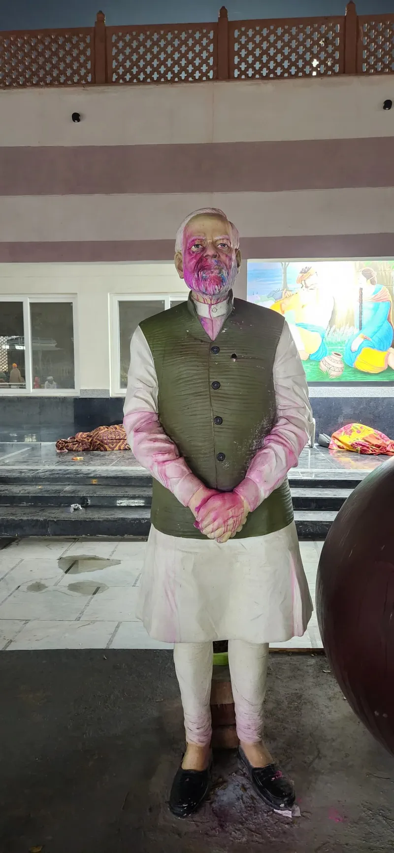 ਪ੍ਰਧਾਨ ਮੰਤਰੀ ਦਾ ਇਹ ਬੁੱਤ ਅੰਮ੍ਰਿਤ ਭਾਰਤ ਰੇਲਵੇ ਸਟੇਸ਼ਨ ਯੋਜਨਾ ਤਹਿਤ ਡੱਬਵਾਲੀ ਰੇਲਵੇ ਸਟੇਸ਼ਨ ’ਤੇ ਸਥਾਪਿਤ ਹੈ। ਹੋਲੀ ਨੂੰ ਦੋ ਦਿਨ ਲੰਘਣ ਮਗਰੋਂ ਵੀ ਰੇਲਵੇ ਸਟੇਸ਼ਨ ਪ੍ਰਬੰਧਨ ਨੇ ਹੋਲੀ ਦੇ ਨਾਂਅ ’ਤੇ ਪ੍ਰਧਾਨ ਮੰਤਰੀ ਦੇ ਬੁੱਤ ਦੇ ਕੀਤੇ ਅਪਮਾਨ ’ਤੇ ਚੁੱਪੀ ਧਾਰੀ ਹੋਈ ਹੈ। ਉਂਝ ਆਮ ਲੋਕਾਂ ਵਿੱਚ ਇਸ ਬਾਰੇ ਰੋਸ ਹੈ।