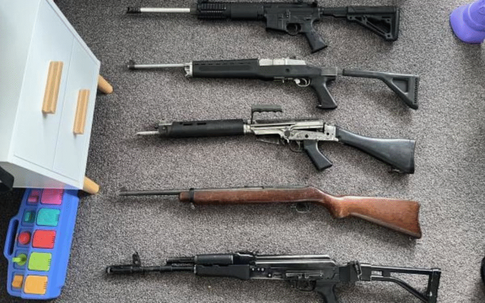 ਆਕਲੈਂਡ (ਐੱਨ ਜੈੱਡ ਤਸਵੀਰ) ਨੇਪੀਅਰ ‘ਚ ਹਥਿਆਰਾਂ ਦਾ ਲਾਇਸੈਂਸ ਧਾਰਕ ਦੇ ਘਰ ਤਲਾਸ਼ੀ ਵਾਰੰਟ ਜਾਰੀ ਕਰਕੇ ਪੁਲਸ ਨੇ ਬੱਚਿਆਂ ਦੇ ਬੈੱਡਰੂਮ ‘ਚੋਂ 5 ਮਿਲਟਰੀ ਸਟਾਈਲ ਦੇ ਸੈਮੀ-ਆਟੋਮੈਟਿਕ ਹਥਿਆਰ ਬਰਾਮਦ ਕੀਤੇ ਹਨ। ਡਿਟੈਕਟਿਵ ਸੀਨੀਅਰ ਸਾਰਜੈਂਟ ਜੇਮਜ਼ ਕੀਨ ਨੇ ਕਿਹਾ ਕਿ 42 ਸਾਲਾ ਵਿਅਕਤੀ ਦੇ ਘਰ ਦੀ ਤਲਾਸ਼ੀ ਉਦੋਂ ਲਈ ਸੀ ਜਦੋਂ ਹਥਿਆਰਾਂ ਦਾ ਲਾਇਸੈਂਸ ਰੱਖਣ ਕਾਰਨ ਉਨਾਂ ਦੇ ਰੱਖ-ਰਖਾਵ ਦੀ ਫਿੱਟਨੈੱਸ ਨੂੰ ਚੈੱਕ ਕਰਨਾ ਸੀ।