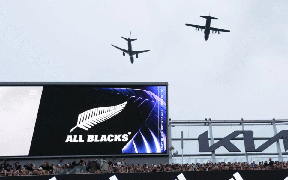 ਨਿਊਜ਼ੀਲੈਂਡ ਰਗਬੀ ਨੇ ਡਿਫੈਂਸ ਫੋਰਸ ਨਾਲ ਸੰਪਰਕ ਕੀਤਾ ਸੀ ਕਿ ਕੀ ਉਹ ਜਹਾਜ਼ਾਂ ਦਾ ਪ੍ਰਦਰਸ਼ਨ ਕਰਨਾ ਚਾਹੁੰਦੇ ਹਨ।