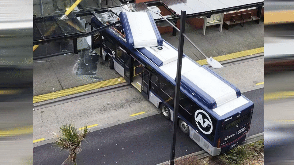 ਆਕਲੈਂਡ (ਐੱਨ ਜੈੱਡ ਤਸਵੀਰ) — ਆਕਲੈਂਡ ਦੇ ਨਿਊ ਲਿੰਨ ਖੇਤਰ ਵਿੱਚ ਅੱਜ ਦੁਪਹਿਰ ਇੱਕ ਇਲੈਕਟ੍ਰਿਕ ਬੱਸ ਨੇ ਅਚਾਨਕ ਨਿਊ ਲਿੰਨ ਟਰਾਂਸਪੋਰਟ ਹਬ ਦੇ ਮੁੱਖ ਦਰਵਾਜ਼ੇ ਨਾਲ ਟੱਕਰ ਮਾਰੀ। ਇਸ ਹਾਦਸੇ ਨਾਲ ਮੌਕੇ ‘ਤੇ ਹੜਕੰਪ ਮਚ ਗਿਆ ਅਤੇ ਐਮਰਜੈਂਸੀ ਸੇਵਾਵਾਂ ਨੂੰ ਤੁਰੰਤ ਬੁਲਾਇਆ ਗਿਆ। ਫਾਇਰ ਐਂਡ ਐਮਰਜੈਂਸੀ ਨਿਊਜ਼ੀਲੈਂਡ ਦੇ ਅਧਿਕਾਰੀਆਂ ਨੇ ਦੱਸਿਆ ਕਿ ਹਾਦਸਾ ਸ਼ਾਮ ਕਰੀਬ 4:45 ਵਜੇ ਵਾਪਰਿਆ। ਟੱਕਰ ਤੋਂ ਬਾਅਦ ਬੱਸ ਦੀ ਛੱਤ ਦੇ ਨੇੜੇ ਧੂਆਂ ਨਿਕਲਦਾ ਵੇਖਿਆ ਗਿਆ, ਜਿਸ ਨਾਲ ਇਹ ਸ਼ੱਕ ਪੈਦਾ ਹੋਇਆ ਕਿ ਬੱਸ ਦੀਆਂ ਬੈਟਰੀਆਂ ਗਰਮ ਹੋ ਗਈਆਂ ਹੋਣ ਜਾਂ ਕਿਸੇ ਤਰ੍ਹਾਂ ਦੀ ਅੱਗ ਲੱਗਣ ਦਾ ਖ਼ਤਰਾ ਹੋ ਸਕਦਾ ਹੈ।