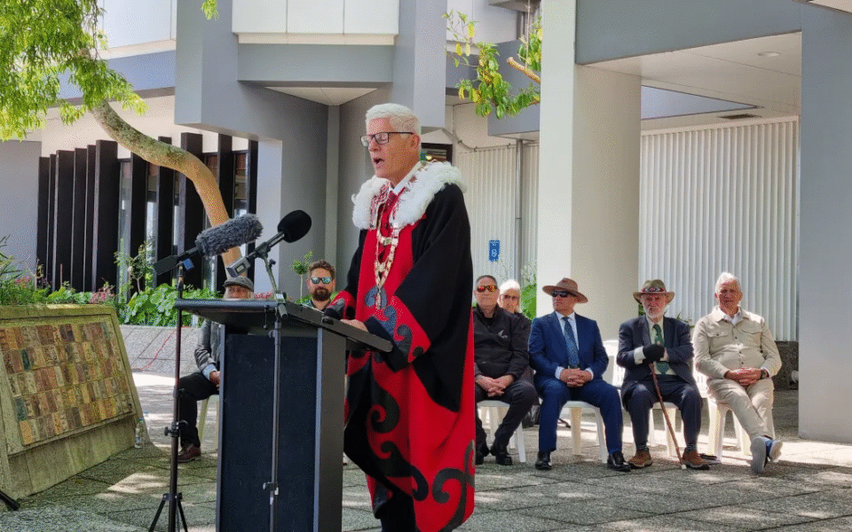 ਆਕਲੈਂਡ (ਐੱਨ ਜੈੱਡ ਤਸਵੀਰ) ਹੈਮਿਲਟਨ ਦੇ ਨਵੇਂ ਮੇਅਰ ਨੇ ਅੱਜ ਸਵੇਰੇ ਕੌਂਸਲ ਇਮਾਰਤ ਦੇ ਬਾਹਰ ਸਿਵਿਕ ਸਕੁਐਰ ਵਿੱਚ ਹੋਈ ਇੱਕ ਸਮਾਰੋਹ ਦੌਰਾਨ ਹਲਫ਼ ਉਠਾਇਆ।