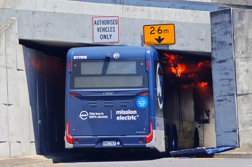 ਫ਼ਾਇਰ ਐਂਡ ਇਮਰਜੈਂਸੀ ਨਿਊਜੀਲੈਂਡ ਨੇ ਕਿਹਾ ਕਿ ਬੱਸ ਇੱਕ ਇਲੈਕਟ੍ਰਿਕ ਵਾਹਨ ਸੀ।