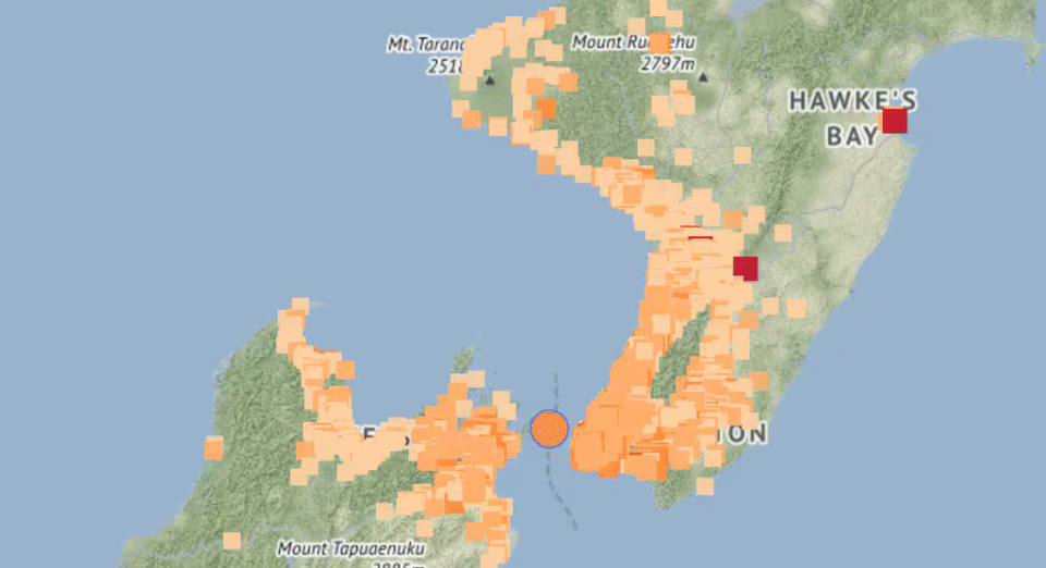 ਇਹ ਭੂਚਾਲ ਉੱਤਰੀ ਦਵੀਪ ਦੇ ਨੀਵੇਂ ਹਿੱਸਿਆਂ ਅਤੇ ਦੱਖਣੀ ਦਵੀਪ ਦੇ ਉੱਪਰੀ ਹਿੱਸਿਆਂ ਵਿੱਚ ਵਿਆਪਕ ਤੌਰ ‘ਤੇ ਮਹਿਸੂਸ ਕੀਤਾ ਗਿਆ — ਉੱਤਰ ਵੱਲ ਨਿਊ ਪਲਾਇਮੁਥ ਤੱਕ ਅਤੇ ਦੱਖਣ ਵੱਲ ਮਾਰਲਬਰੋ ਤੱਕ।