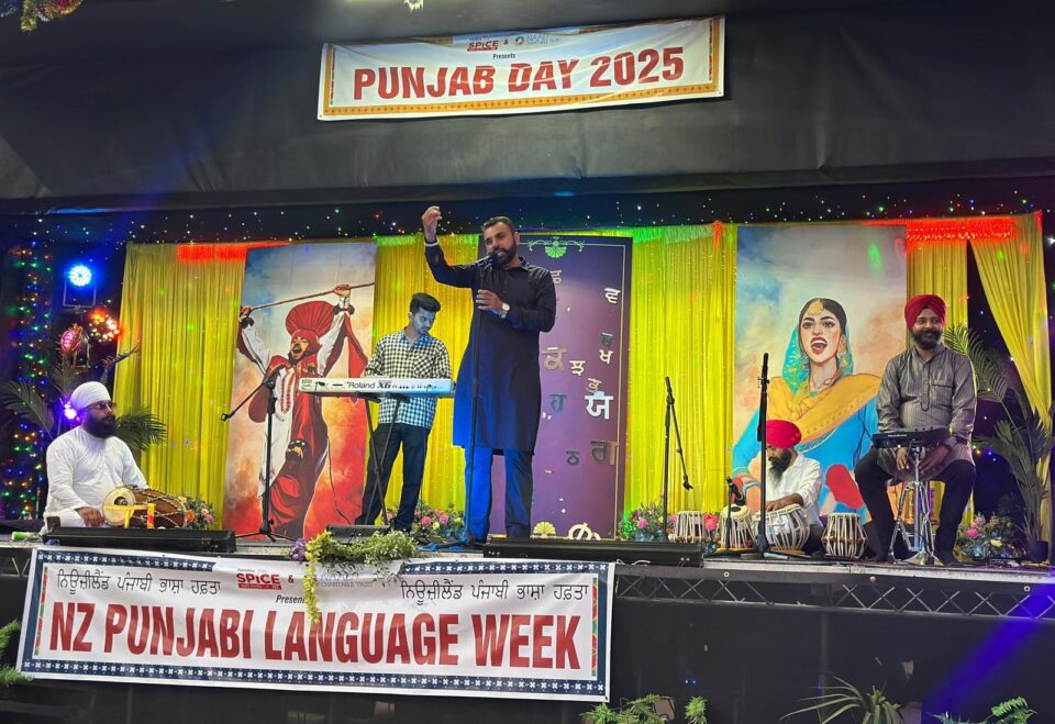 ਆਕਲੈਂਡ (ਕੁਲਵੰਤ ਸਿੰਘ ਖੈਰਾਂਬਾਦੀ)(ਤਸਵੀਰ) — ਨਿਊਜ਼ੀਲੈਂਡ ਵਿੱਚ ਚੱਲ ਰਹੇ “ਪੰਜਾਬੀ ਭਾਸ਼ਾ ਹਫਤੇ” ਦੇ ਪ੍ਰੋਗਰਾਮਾਂ ਨੂੰ ਅੱਗੇ ਵਧਾਉਂਦੇ ਹੋਏ ਰੇਡੀਓ ਸਪਾਈਸ ਵੱਲੋਂ ਵਿਸ਼ੇਸ਼ “ਪੰਜਾਬ ਡੇ” ਦਾ ਆਯੋਜਨ ਕੀਤਾ ਗਿਆ। RHYTHM School ਦੇ ਸਹਿਯੋਗ ਨਾਲ ਇਹ ਸਮਾਰੋਹ ਪਹਿਲੀ ਵਾਰ ਓਟੀਆ ਸਕਵੇਅਰ, ਮੈਨੀਕਾਓ, ਔਕਲੈਂਡ ਵਿੱਚ ਮਨਾਇਆ ਗਿਆ। ਗੱਲ ਯਾਦ ਰਹੇ ਕਿ ਇੰਗਲੈਂਡ, ਕੈਨੇਡਾ ਅਤੇ ਕਈ ਹੋਰ ਮੁਲਕਾਂ ਵਿੱਚ ਪੰਜਾਬ ਡੇ ਸਾਲਾਂ ਤੋਂ ਮਨਾਇਆ ਜਾ ਰਿਹਾ ਹੈ, ਜਦਕਿ ਨਿਊਜ਼ੀਲੈਂਡ ਵਿੱਚ ਇਸਦੀ ਸ਼ੁਰੂਆਤ ਇਸ ਸਾਲ ਹੋਈ ਹੈ।