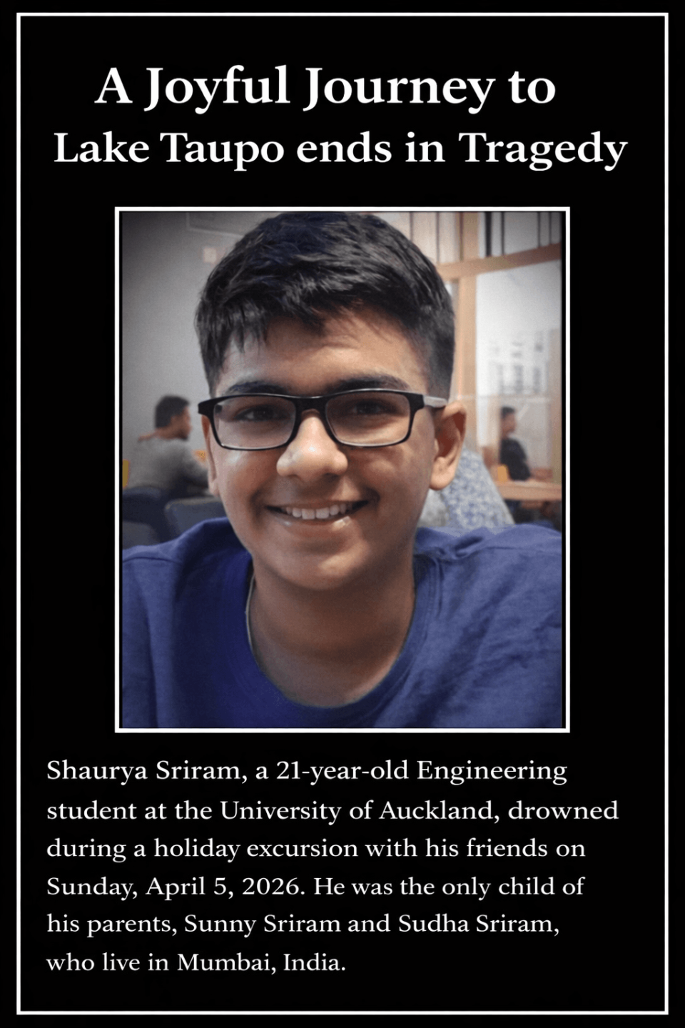 ਆਕਲੈਂਡ (ਐੱਨ ਜੈੱਡ ਤਸਵੀਰ) ਈਸਟਰ ਛੁੱਟੀਆਂ ਦੌਰਾਨ ਨਿਊਜ਼ੀਲੈਂਡ ਦੇ ਮਸ਼ਹੂਰ ਸੈਰ-ਸਪਾਟਾ ਸਥਾਨ ‘ਤੇ ਇੱਕ ਦਰਦਨਾਕ ਹਾਦਸੇ ਵਿੱਚ 21 ਸਾਲਾ ਭਾਰਤੀ ਵਿਦਿਆਰਥੀ ਦੀ ਡੁੱਬਣ ਕਾਰਨ ਮੌਤ ਹੋ ਗਈ। ਮ੍ਰਿਤਕ ਦੀ ਪਛਾਣ ਸ਼ੌਰਿਆ ਵਜੋਂ ਹੋਈ ਹੈ, ਜੋ ਮੁੰਬਈ ਦਾ ਰਹਿਣ ਵਾਲਾ ਸੀ ਅਤੇ ਯੂਨੀਵਰਸਿਟੀ ਆਫ ਆਕਲੈਂਡ ਵਿੱਚ ਇੰਜੀਨੀਅਰਿੰਗ ਦੀ ਪੜ੍ਹਾਈ ਕਰ ਰਿਹਾ ਸੀ।